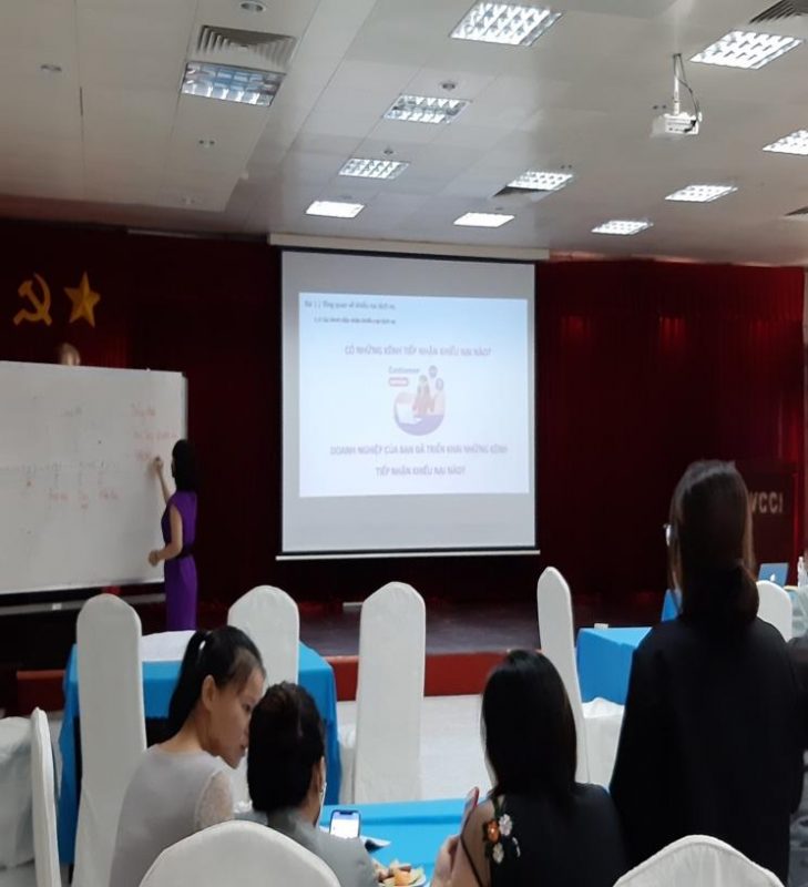 Figure 1. Expert Master Hồ Trúc Vi at the customer service (CSKH) skills training session for trade promotion in Vung Tau.